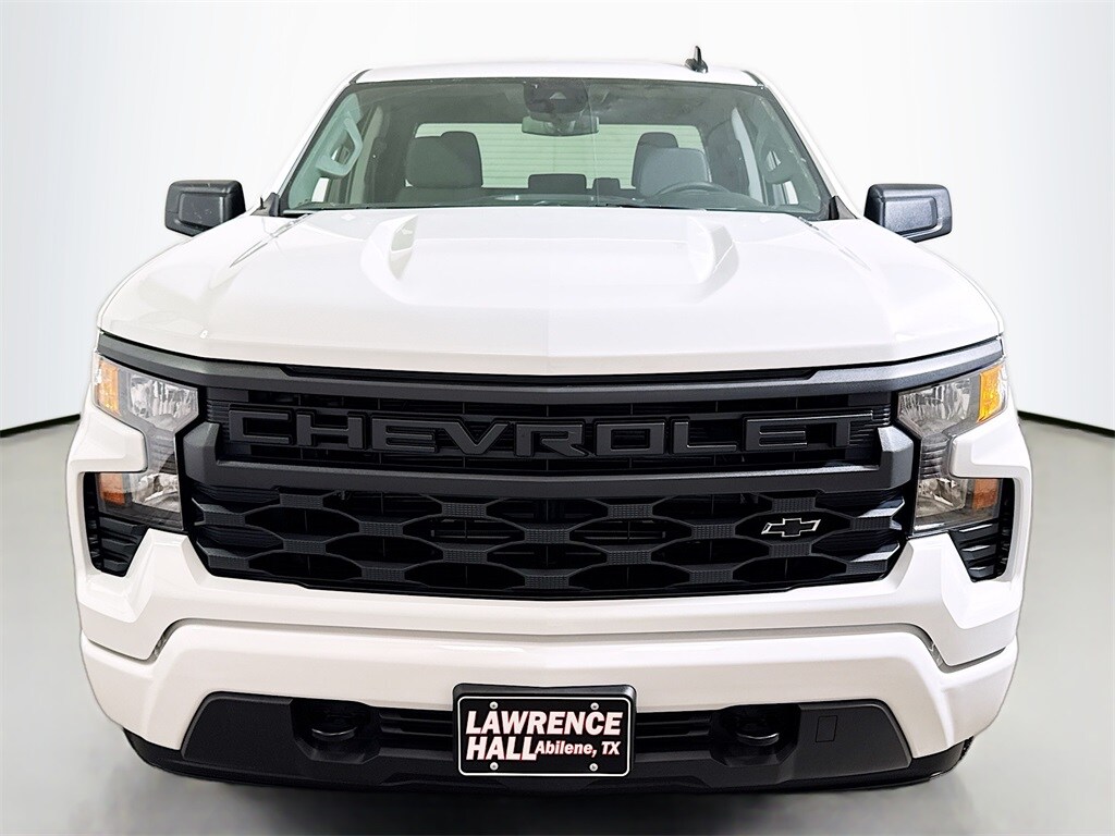 This 2025 Chevrolet Silverado 1500 Custom Loaner in Summit White comes with the following features: 8-Speed Automatic, Black Cloth, 10-Way Power Driver Seat w/Lumbar, 120-Volt Bed Mounted Power Outlet, 120-Volt Interior Power Outlet, 3.42 Rear Axle Ratio, 3.5" Monochromatic Display Driver Info Center, 4-Wheel Disc Brakes, 4" Black Round Assist Steps (LPO), 40/20/40 Front Split-Bench Seat, 6 Speakers, 6-Speaker Audio System, ABS brakes, Air Conditioning, Alloy wheels, AM/FM radio: SiriusXM, Apple CarPlay/Android Auto, Auto High-beam Headlights, Automatic Emergency Braking, Black Chrome Exhaust Tip (LPO), Black Name Plates (LPO), Black Tailgate CHEVROLET Lettering (LPO), Bluetooth® For Phone, Brake assist, Bumpers: body-color, Cloth Seat Trim, Color-Keyed Carpeting Floor Covering, Compass, Custom Convenience Package, Custom Value Package, Dark Essentials Package (LPO), Deep-Tinted Glass, Delay-off headlights, Driver door bin, Driver vanity mirror, Dual front impact airbags, Dual front side impact airbags, Dual Rear USB Ports (Charge Only), Electric Rear-Window Defogger, Electronic Cruise Control, Electronic Stability Control, Emergency communication system: OnStar, EZ Lift Power Lock & Release Tailgate, Following Distance Indicator, Forward Collision Alert, Front anti-roll bar, Front Black Bowtie Emblem (LPO), Front Center Armrest w/Storage, Front Frame-Mounted Black Recovery Hooks, Front License Plate Kit, Front Pedestrian Braking, Front reading lights, Front Rubberized Vinyl Floor Mats, Front wheel independent suspension, Fully automatic headlights, HD Rear Vision Camera, Heated door mirrors, High Capacity Suspension Package, Hitch Guidance, Illuminated entry, IntelliBeam Automatic High Beam On/Off, Lane Keep Assist w/Lane Departure Warning, LED Cargo Area Lighting, Low tire pressure warning, Manual Tilt Wheel Steering Column, Occupant sensing airbag, OnStar Services Capable, Outside temperature display, Overhead airbag, Overhead console, Panic alarm, Passenger door bin, Passenger vanity mirror, Power door mirrors, Power driver seat, Power Front Windows w/Driver Express Up/Down, Power Front Windows w/Passenger Express Down, Power Rear Windows w/Express Down, Power steering, Power windows, Preferred Equipment Group 1CX, Premium audio system: Chevrolet Infotainment 3, Radio data system, Radio: Chevrolet Infotainment 3 System, Rear 60/40 Folding Bench Seat (Folds Up), Rear reading lights, Rear Rubberized-Vinyl Floor Mats, Rear step bumper, Rear window defroster, Remote Keyless Entry, Remote keyless entry, Remote Vehicle Starter System, Security system, SiriusXM Trial Subscription, Speed control, Speed-sensing steering, Split folding rear seat, Standard Tailgate, Tachometer, Teen Driver, Theft Deterrent System (Unauthorized Entry), Tilt steering wheel, Tire Pressure Monitoring System, Traction control, Trailering Package, Trip computer, TurboMax Blackout Package, Variably intermittent wipers, Voltmeter, Wheels: 20" x 9" Bright Silver Painted Aluminum, Wheels: 20" x 9" High Gloss Black Painted Alum, Wi-Fi Hot Spot Capable, 8-Speed Automatic, Black Cloth.