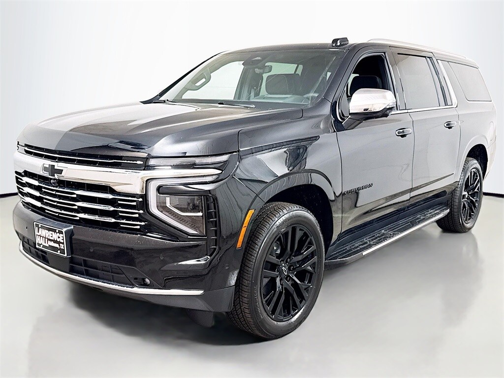 This 2025 Chevrolet Suburban Premier New Vehicle Purchase in Black comes with the following features: 10 Speakers, 15" Diagonal Multi-Color Head-Up Display, 20" x 9" Polished Aluminum Wheels, 3.23 Rear Axle Ratio, 3rd Row 60/40 Power-Folding Split-Bench, 3rd row seats: split-bench, 4-Way Power Driver Lumbar Seat Adjuster, 4-Way Power Front Passenger Lumbar Seat Adjuster, 4-Wheel Disc Brakes, 8-Way Power Driver Seat Adjuster, 8-Way Power Front Passenger Seat Adjuster, ABS brakes, Adaptive suspension, Advanced Security Package, Air Conditioning, Alloy wheels, AM/FM radio: SiriusXM with 360L, Apple CarPlay/Android Auto, Auto High-beam Headlights, Auto-dimming door mirrors, Auto-Dimming Inside Rear-View Mirror, Auto-dimming Rear-View mirror, Auto-leveling suspension, Automatic temperature control, AutoSense Hands-Free Power Liftgate, Black Mirror Caps (LPO), Black Name Plates (LPO), Bose 10-Speaker Surround w/CenterPoint, Brake assist, Bright Front & Rear Door Sill Plates, Bumpers: body-color, Chrome Door Handles w/Body-Color Strip, Compass, Delay-off headlights, Driver door bin, Driver vanity mirror, Dual Exhaust System, Dual front impact airbags, Dual front side impact airbags, Dual-Pane Power Panoramic Sunroof, Electronic Stability Control, Emergency communication system: OnStar Services capable, Exterior Parking Camera Rear, Four wheel independent suspension, Front & Rear Black Bowtie Emblems (LPO), Front anti-roll bar, Front Bucket Seats, Front Center Armrest, Front dual zone A/C, Front fog lights, Front LED Fog Lamps, Front reading lights, Fully automatic headlights, Garage door transmitter, Glass Breakage Sensor, Heated 2nd Row Outboard Seats, Heated door mirrors, Heated Driver & Front Passenger Seats, Heated front seats, Heated Power-Adjustable Outside Mirrors, Heated rear seats, Heated Steering Wheel, Heated steering wheel, Illuminated entry, Inside Rearview Auto-Dimming Rear Camera Mirror, LED Headlamps w/LED Daytime Running Lamps, LED Tail Lamps, License Plate Front Mounting Package, Low tire pressure warning, Magnetic Ride Control Suspension, Memory seat, Memory Settings, Navigation system: Google built-in compatibility (select service plan required, terms and limitations apply), Occupant sensing airbag, Outside temperature display, Overhead airbag, Overhead console, Panic alarm, Passenger door bin, Passenger vanity mirror, Perforated Heated & Ventilated Seats, Perforated Leather Seating Surfaces, Power door mirrors, Power driver seat, Power Liftgate, Power passenger seat, Power Release 2nd Row Bucket Seats, Power steering, Power Tilt & Telescopic Steering Column, Power windows, Power-Sliding Center Floor Console, Preferred Equipment Group 1LZ, Premium Dark Essentials Package (LPO), Radio data system, Radio: 17.7" Diagonal Advanced Color LCD Display, Rain sensing wipers, Rear air conditioning, Rear anti-roll bar, Rear Power Liftgate, Rear reading lights, Rear Seat Media System, Rear window defroster, Rear window wiper, Remote keyless entry, Security system, Self-Powered Horn Theft-Deterrent Alarm System, SiriusXM w/360L Trial Subscription, Speed control, Speed-sensing steering, Split folding rear seat, Spoiler, Steering wheel memory, Steering wheel mounted audio controls, Tachometer, Technology & Entertainment Package, Technology Package, Telescoping steering wheel, Tilt steering wheel, Traction control, Trip computer, Turn signal indicator mirrors, Universal Home Remote, Variably intermittent wipers, Vehicle Inclination Sensor, Vehicle Interior Movement Sensor, Ventilated front seats, Voltmeter, Wheels: 22" Multi-Spoke Gloss Black (LPO), Wheels: 22" Steel (LPO), Wireless Apple CarPlay/Wireless Android Auto, Wireless Phone Charging.