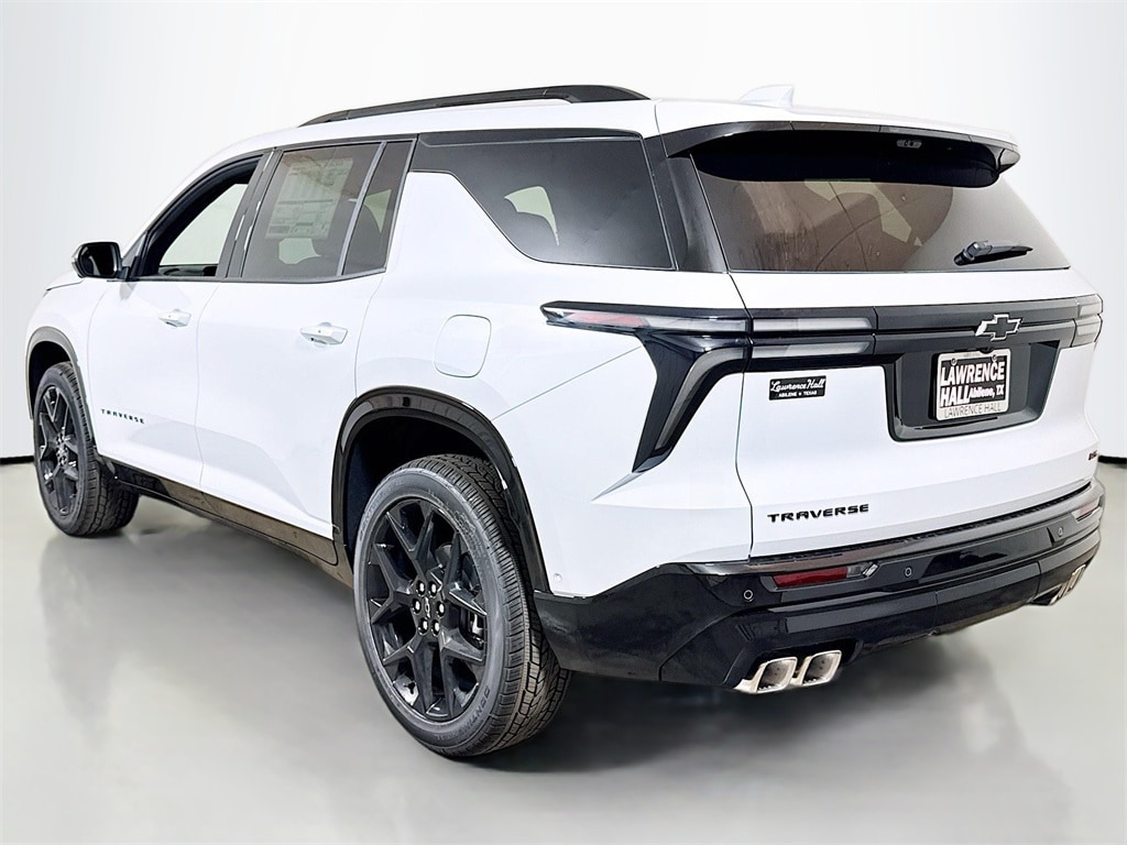 This 2026 Chevrolet Traverse RS New Vehicle Purchase in Polar White Tricoat comes with the following features: 12 Speakers, 3 Years SiriusXM, 3rd row seats: split-bench, 4-Wheel Disc Brakes, 6-Way Power Front Passenger Seat Adjuster, 8-Way Power Driver Seat Adjuster, ABS brakes, Air Conditioning, Alloy wheels, AM/FM radio: SiriusXM with 360L, Apple CarPlay/Android Auto, Auto High-beam Headlights, Auto tilt-away steering wheel, Auto-dimming door mirrors, Automatic temperature control, Bose Premium 12-Speaker Audio System Feature, Brake assist, Bumpers: body-color, Child-Seat-Sensing Airbag, Compass, Delay-off headlights, Driver 4-Way Power Lumbar Seat Adjuster, Driver door bin, Driver vanity mirror, Dual front impact airbags, Dual front side impact airbags, Electronic Stability Control, Emergency communication system: OnStar, Exterior Parking Camera Rear, Four wheel independent suspension, Front anti-roll bar, Front Bucket Seats, Front Center Armrest, Front dual zone A/C, Front Passenger 4-Way Power Lumbar Seat Adjuster, Front reading lights, Fully automatic headlights, Garage door transmitter, Heated door mirrors, Heated Driver & Front Passenger Seats, Heated front seats, Heated rear seats, Heated steering wheel, Illuminated entry, Low tire pressure warning, Memory seat, Navigation System, Occupant sensing airbag, Outside temperature display, Overhead airbag, Overhead console, Panic alarm, Passenger door bin, Passenger vanity mirror, Perforated Leather-Appointed Seat Trim, Power door mirrors, Power driver seat, Power Dual Glass Panoramic Sliding Sunroof, Power Liftgate, Power passenger seat, Power steering, Power windows, Preferred Equipment Group 1RS, Radio data system, Radio: Audio System w/17.7" Diagonal Display, Rain sensing wipers, Rear air conditioning, Rear anti-roll bar, Rear reading lights, Rear window defroster, Rear window wiper, Remote keyless entry, Security system, SiriusXM w/360L Trial Subscription, Speed control, Speed-sensing steering, Spoiler, Sport steering wheel, Steering wheel memory, Steering wheel mounted audio controls, Tachometer, Telescoping steering wheel, Tilt steering wheel, Traction control, Trip computer, Turn signal indicator mirrors, Variably intermittent wipers, Ventilated Driver & Front Passenger Seats, Ventilated front seats, Voltmeter, Wheels: 22" High Gloss Black Painted Aluminum.