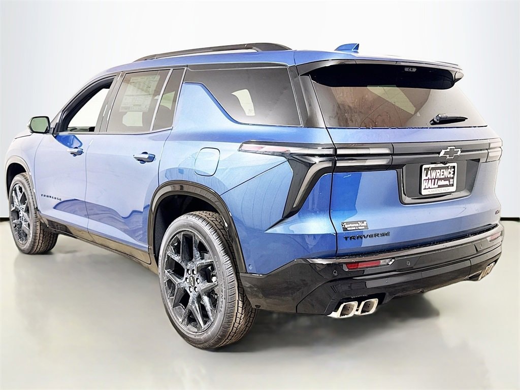 This 2026 Chevrolet Traverse RS New Vehicle Purchase in Lakeshore Blue Metallic comes with the following features: 12 Speakers, 3rd row seats: split-bench, 4-Wheel Disc Brakes, 6-Way Power Front Passenger Seat Adjuster, 8-Way Power Driver Seat Adjuster, ABS brakes, Air Conditioning, Alloy wheels, AM/FM radio: SiriusXM with 360L, Apple CarPlay/Android Auto, Auto High-beam Headlights, Auto tilt-away steering wheel, Auto-dimming door mirrors, Automatic temperature control, Bose Premium 12-Speaker Audio System Feature, Brake assist, Bumpers: body-color, Child-Seat-Sensing Airbag, Compass, Delay-off headlights, Driver 4-Way Power Lumbar Seat Adjuster, Driver door bin, Driver vanity mirror, Dual front impact airbags, Dual front side impact airbags, Electronic Stability Control, Emergency communication system: OnStar, Exterior Parking Camera Rear, Four wheel independent suspension, Front anti-roll bar, Front Bucket Seats, Front Center Armrest, Front dual zone A/C, Front Passenger 4-Way Power Lumbar Seat Adjuster, Front reading lights, Fully automatic headlights, Garage door transmitter, Heated door mirrors, Heated Driver and Front Passenger Seats, Heated front seats, Heated rear seats, Heated steering wheel, Illuminated entry, Low tire pressure warning, Memory seat, Navigation System, Occupant sensing airbag, Outside temperature display, Overhead airbag, Overhead console, Panic alarm, Passenger door bin, Passenger vanity mirror, Perforated Leather-Appointed Seat Trim, Power door mirrors, Power driver seat, Power Dual Glass Panoramic Sliding Sunroof, Power Liftgate, Power passenger seat, Power steering, Power windows, Preferred Equipment Group 1RS, Radio data system, Radio: : Audio System w/17.7 Diagonal Display, Rain sensing wipers, Rear air conditioning, Rear anti-roll bar, Rear reading lights, Rear window defroster, Rear window wiper, Remote keyless entry, Security system, SiriusXM with 360L Trial Subscription, Speed control, Speed-sensing steering, Spoiler, Sport steering wheel, Steering wheel memory, Steering wheel mounted audio controls, Tachometer, Telescoping steering wheel, Tilt steering wheel, Traction control, Trip computer, Turn signal indicator mirrors, Variably intermittent wipers, Ventilated Driver and Front Passenger Seats, Ventilated front seats, Voltmeter, Wheels: 22 High Gloss Black Painted Aluminum.