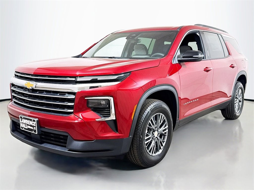 This 2026 Chevrolet Traverse LT New Vehicle Purchase in Radiant Red Tintcoat comes with the following features: 3rd row seats: split-bench, 4-Way Manual Front Passenger Seat Adjuster, 4-Wheel Disc Brakes, 6 Speakers, 6-Speaker Audio System Feature, 8-Way Power Driver Seat Adjuster, ABS brakes, Air Conditioning, Alloy wheels, AM/FM radio: SiriusXM with 360L, Apple CarPlay/Android Auto, Auto High-beam Headlights, Automatic temperature control, Brake assist, Bumpers: body-color, Child-Seat-Sensing Airbag, Compass, Delay-off headlights, Driver door bin, Driver vanity mirror, Dual front impact airbags, Dual front side impact airbags, Electronic Stability Control, Emergency communication system: OnStar, Four wheel independent suspension, Front anti-roll bar, Front Bucket Seats, Front Center Armrest, Front dual zone A/C, Front reading lights, Fully automatic headlights, Heated door mirrors, Heated Driver & Front Passenger Seats, Heated front seats, Heated steering wheel, Illuminated entry, Low tire pressure warning, Navigation System, Occupant sensing airbag, Outside temperature display, Overhead airbag, Overhead console, Panic alarm, Passenger door bin, Passenger vanity mirror, Power door mirrors, Power driver seat, Power Liftgate, Power steering, Power windows, Preferred Equipment Group 1LT, Premium Cloth Seat Trim, Radio data system, Radio: Audio System w/17.7 Diagonal Display, Rear air conditioning, Rear anti-roll bar, Rear reading lights, Rear window defroster, Rear window wiper, Remote keyless entry, Security system, SiriusXM w/360L Trial Subscription, Speed control, Speed-sensing steering, Spoiler, Steering wheel mounted audio controls, Tachometer, Telescoping steering wheel, Tilt steering wheel, Traction control, Trip computer, Turn signal indicator mirrors, Variably intermittent wipers, Voltmeter, Wheels: 18 Grazen Metallic Machined-Face Aluminum.