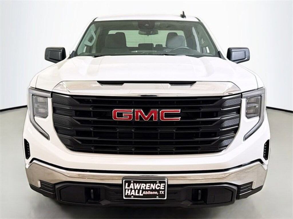 This 2025 GMC Sierra 1500 Pro Loaner in Summit White comes with the following features: 10-Speed Automatic, 4WD, Black Cloth, 170 Amp Alternator, 2 Charge/Data USB Ports, 220 Amp Alternator, 3.23 Rear Axle Ratio, 3.42 Rear Axle Ratio, 4-Way Manual Driver Seat Adjuster, 4-Way Manual Passenger Seat Adjuster, 4-Wheel Disc Brakes, 6 Speakers, 6-Speaker Audio System Feature, ABS brakes, Air Conditioning, AM/FM radio, Apple CarPlay/Android Auto, Auto High-beam Headlights, Auto-Locking Rear Differential, Automatic Emergency Braking, Auxiliary External Transmission Oil Cooler, Brake assist, Buckle to Drive, Bumpers: chrome, Chrome Header w/Flat Black Grille Insert Bars, Compass, Convenience Package, Deep-Tinted Glass, Delay-off headlights, Driver door bin, Dual front impact airbags, Dual front side impact airbags, Electric Rear-Window Defogger, Electronic Stability Control, Emergency communication system: OnStar, External Engine Oil Cooling, EZ Lift Power Lock & Release Tailgate, Following Distance Indicator, Forward Collision Alert, Front 40/20/40 Split-Bench Seat, Front anti-roll bar, Front Center Armrest w/Storage, Front Frame-Mounted Black Recovery Hooks, Front License Plate Kit, Front Pedestrian Braking, Front reading lights, Front wheel independent suspension, Fully automatic headlights, HD Rear Vision Camera, Heated Power-Adjustable Outside Mirrors, Hitch Guidance, Illuminated entry, IntelliBeam Automatic High Beam On/Off, Lane Keep Assist w/Lane Departure Warning, LED Cargo Area Lighting, Low tire pressure warning, Occupant sensing airbag, OnStar Services Capable, Outside temperature display, Overhead airbag, Overhead console, Panic alarm, Passenger door bin, Passenger vanity mirror, Power Door Locks, Power Front Windows w/Driver Express Up/Down, Power Front Windows w/Passenger Express Down, Power Rear Windows w/Express Down, Power steering, Power windows, Preferred Equipment Group 1SA, Pro Value Package, Push Button Start, Radio data system, Radio: GMC Infotainment Audio System, Rear reading lights, Rear step bumper, Remote Keyless Entry, Remote keyless entry, Solar Absorbing Tinted Glass, Speed control, Speed-sensing steering, Split folding rear seat, Standard Suspension Package, Tachometer, Tilt steering wheel, Traction control, Trailering Package, Trip computer, Variably intermittent wipers, Vinyl Seat Trim, Voltmeter, Wheels: 17 x 8 Silver Painted Steel, Wi-Fi Hotspot Capable, Wireless Apple CarPlay/Wireless Android Auto, 10-Speed Automatic, 4WD, Black Cloth.