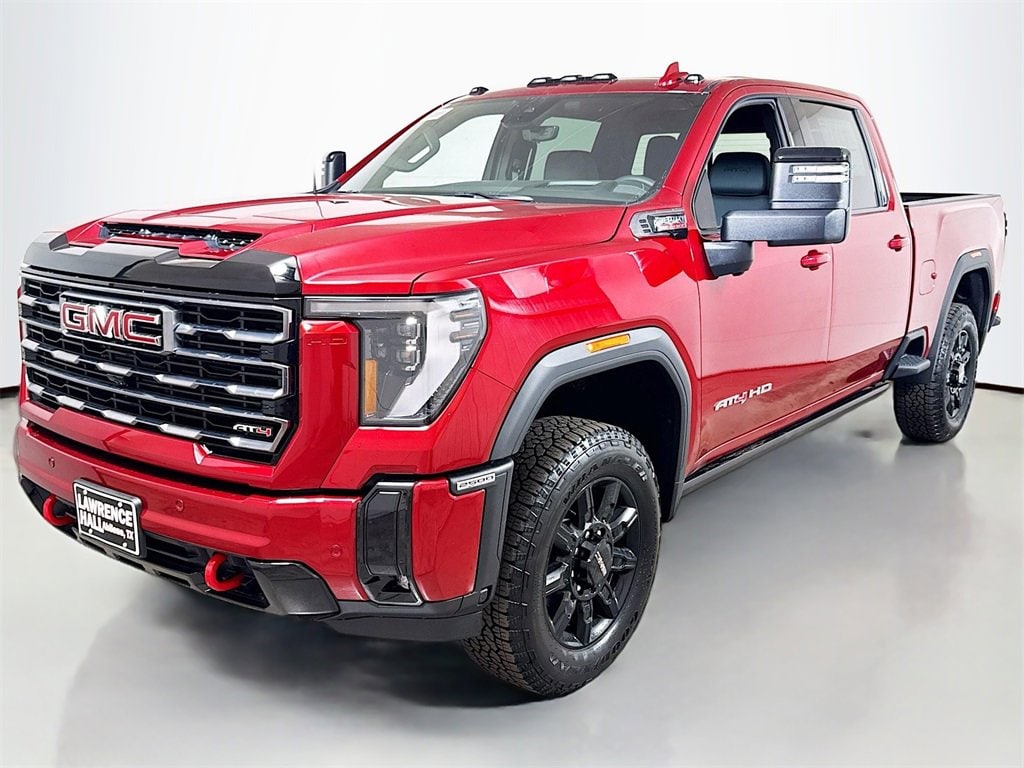 This 2025 GMC Sierra 2500HD AT4 New Vehicle Purchase in Volcanic Red Tintcoat comes with the following features: 10-Speed Automatic, 4WD, Jet Black With Kalahari Accents Leather, 10-Way Power Driver Seat Adjuster w/Lumbar, 10-Way Power Passenger Seat Adjuster w/Lumbar, 120-Volt Bed Mounted Power Outlet, 120-Volt Instrument Panel Power Outlet, 2 Charge-Only Rear USB Ports, 2 Charge/Data USB Ports Inside Center Console, 2 USB Ports, 2-Speed Active Transfer Case, 220-Amp Alternator, 3 Years SiriusXM, 3.42 Axle Ratio, 3.73 Rear Axle Ratio, 4-Wheel Disc Brakes, 7 Speakers, ABS brakes, Air Conditioning, Alloy wheels, AM/FM radio: SiriusXM with 360L, Apple CarPlay/Android Auto, AT4 Preferred Package, AT4 Premium Plus Package, Auto High-beam Headlights, Auto-dimming door mirrors, Auto-dimming Rear-View mirror, Automatic Emergency Braking, Automatic temperature control, Bed View Camera w/2 Trailer Camera Provisions, Bose Premium 7-Speaker Sound System, Brake assist, Buckle to Drive, Bumpers: body-color, Compass, Deep-Tinted Glass, Delay-off headlights, Driver door bin, Driver Memory, Driver vanity mirror, Dual front impact airbags, Dual front side impact airbags, Electric Rear-Window Defogger, Electronic Stability Control, Emergency communication system: OnStar, Engine Block Heater, Exhaust Brake, Floor-Mounted Center Console, Following Distance Indicator, Forward Collision Alert, Front anti-roll bar, Front Bucket Seats, Front Center Armrest, Front dual zone A/C, Front fog lights, Front License Plate Kit, Front Pedestrian Braking, Front Prem Floor Liners w/Removable Carpet Insert, Front Rain-Sensing Wipers, Front reading lights, Front wheel independent suspension, Fully automatic headlights, Gloss Black Header Grille & Grille Insert Bars, Gooseneck/5th Wheel Prep Package, HD Surround Vision, Heated 2nd Row Outboard Seats, Heated door mirrors, Heated Driver & Front Outboard Passenger Seats, Heated front seats, Heated rear seats, Heated steering wheel, Heavy-Duty 80 Amp Battery, Hill Descent Control, Hitch Guidance w/Hitch View, Hitch Package (LPO), Illuminated entry, In-Vehicle Trailering System App, Inside Rearview Auto-Dimming Rear Camera Mirror, IntelliBeam Automatic High Beam On/Off, Keyless Open & Start, Lane Departure Warning System, LED Cargo Area Lighting, LED Smoked Amber Roof Marker Lamps, Low tire pressure warning, Manual Tilt-Wheel/Telescoping Steering Column, Memory seat, Multicolor 15 Diagonal Head-Up Display, Occupant sensing airbag, Off-Road High Clearance Step (LPO), Off-Road Suspension, OnStar Services Capable, Outside temperature display, Overhead airbag, Overhead console, Panic alarm, Passenger door bin, Passenger vanity mirror, Perforated Leather-Appointed Front Seat Trim, Pickup Box, Power door mirrors, Power driver seat, Power Front Passenger Windows w/Express Up/Down, Power passenger seat, Power Sliding Rear Window w/Defogger, Power steering, Power Sunroof, Power windows, Power-Retractable Black Assist Steps, Preferred Equipment Group 4SB, Push Button Start, Radio: AM/FM w/Premium GMC Infotainment System, Rain sensing wipers, Rear Cross Traffic Alert, Rear Prem Floor Liners w/Removable Carpet Insert, Rear reading lights, Rear seat center armrest, Rear step bumper, Rear Underseat Storage (LPO), Rear Wheelhouse Liners, Rear window defroster, Remote keyless entry, Remote Vehicle Starter System, Safety Alert Seat, Security system, SiriusXM w/360L Trial Subscription, Speed control, Speed-sensing steering, Split folding rear seat, Spray-On Pickup Bedliner w/GMC Logo, Steering Wheel Audio Controls, Steering wheel mounted audio controls, Tachometer, Technology Package, Telescoping steering wheel, Tilt steering wheel, Traction control, Trailer Cam Provisions & T Tax, title and license not included. Vehicle may have dealer accessories added. Pricing may not be compatible with cash, outside finance, or special APR offers. Contact dealer for additional details: $1000 - Buic