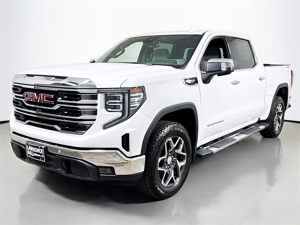 This 2026 GMC Sierra 1500 SLT New Vehicle Purchase in Summit White comes with the following features: 10-Speed Automatic, 4WD, Dark Walnut/Slate Leather, 10-Way Power Driver Seat Adjuster w/Lumbar, 10-Way Power Passenger Seat Adjuster w/Lumbar, 120-Volt Bed Mounted Power Outlet, 120-Volt Interior Power Outlet, 170 Amp Alternator, 2 Charge/Data USB Ports, 2 Charge/Data USB Ports Inside Center Console, 2 Type-C Charge-Only Rear USB Ports, 20" Polished Aluminum Wheels, 3 Years SiriusXM, 3.23 Rear Axle Ratio, 4-Wheel Disc Brakes, 6 Speakers, 6-Speaker Audio System Feature, ABS brakes, Adaptive Cruise Control, Air Conditioning, Alloy wheels, AM/FM radio: SiriusXM with 360L, Apple CarPlay/Android Auto, Auto High-beam Headlights, Auto-dimming door mirrors, Auto-dimming Rear-View mirror, Auto-Locking Rear Differential, Automatic Emergency Braking, Automatic temperature control, Auxiliary External Transmission Oil Cooler, Brake assist, Buckle to Drive, Bumpers: chrome, Chrome Header & Chrome Grille Insert Bars, Chrome Wheel To Wheel Assist Steps, Color-Keyed Carpeting Floor Covering, Compass, Deep-Tinted Glass, Delay-off headlights, Driver door bin, Driver Memory, Driver vanity mirror, Dual Exhaust System, Dual front impact airbags, Dual front side impact airbags, Electric Rear-Window Defogger, Electronic Precision Shift, Electronic Stability Control, Emergency communication system: OnStar, Floor-Mounted Center Console, Following Distance Indicator, Forward Collision Alert, Front 40/20/40 Split-Bench Seat, Front anti-roll bar, Front Bucket Seats, Front Center Armrest w/Storage, Front dual zone A/C, Front fog lights, Front Frame-Mounted Black Recovery Hooks, Front License Plate Kit, Front Pedestrian Braking, Front Rain-Sensing Wipers, Front reading lights, Front wheel independent suspension, Fully automatic headlights, HD Rear Vision Camera, HD Surround Vision, Heated 2nd Row Outboard Seats, Heated door mirrors, Heated Driver & Front Outboard Passenger Seating, Heated front seats, Heated steering wheel, Heavy-Duty Air Filter, High Capacity Suspension Package, Hill Descent Control, Hitch Guidance, Hitch View, Illuminated entry, In-Vehicle Trailering System App, Integrated Trailer Brake Controller, IntelliBeam Automatic High Beam On/Off, Keyless Open & Start, Lane Keep Assist w/Lane Departure Warning, LED Cargo Area Lighting, Low tire pressure warning, Manual Tilt-Wheel & Telescoping Steering Column, Memory seat, Navigation System, Occupant sensing airbag, Off-Road Suspension, OnStar Services Capable, Outside temperature display, Overhead airbag, Overhead console, Panic alarm, Passenger door bin, Passenger vanity mirror, Perf Leather-Appointed Front Outboard Seat Trim, Perimeter Lighting, Power Door Locks, Power door mirrors, Power driver seat, Power Front Passenger Windows w/Express Up/Down, Power Front Windows w/Driver Express Up/Down, Power passenger seat, Power Rake & Telescoping Steering Column, Power Rear Windows w/Express Down, Power Sliding Rear Window w/Rear Defogger, Power steering, Power windows, Preferred Equipment Group 4SA, Premium Bose 7-Speaker Sound System, ProGrade Trailering System, Push Button Start, Radio data system, Radio: Premium GMC Infotainment Audio System, Rain sensing wipers, Rear Cross Traffic Braking, Rear Pedestrian Detection, Rear reading lights, Rear seat center armrest, Rear step bumper, Rear Wheelhouse Liners, Rear window defroster, Remote keyless entry, Remote Vehicle Starter System, Safety Alert Seat, Security system, Sierra Safety Plus Package, SiriusXM w/360L Trial Subscription, SLT Convenience Package, SLT Preferred Package, Speed control, Speed-sensing steering, Split folding rear seat, Spray-On Pick Tax, title and license not included. Vehicle may have dealer accessories added. Pricing may not be compatible with cash, outside finance, or special APR offers. Contact dealer for additional details: $1500 - GM Bonus Cash. Exp. 12/01/2025 $1750 - Buick & GMC Consumer Cash Program. Exp. 12/01/2025
