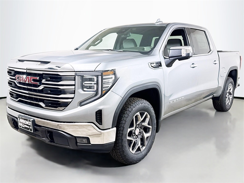 This 2026 GMC Sierra 1500 SLT New Vehicle Purchase in Sterling Metallic comes with the following features: 10-Speed Automatic, 4WD, Dark Walnut/Slate Leather, 10-Way Power Driver Seat Adjuster w/Lumbar, 10-Way Power Passenger Seat Adjuster w/Lumbar, 120-Volt Bed Mounted Power Outlet, 120-Volt Interior Power Outlet, 170 Amp Alternator, 2 Charge/Data USB Ports, 2 Type-C Charge-Only Rear USB Ports, 3.23 Rear Axle Ratio, 4-Wheel Disc Brakes, 6 Speakers, 6-Speaker Audio System Feature, ABS brakes, Air Conditioning, Alloy wheels, AM/FM radio: SiriusXM with 360L, Apple CarPlay/Android Auto, Auto High-beam Headlights, Auto-dimming door mirrors, Auto-dimming Rear-View mirror, Auto-Locking Rear Differential, Automatic Emergency Braking, Automatic temperature control, Auxiliary External Transmission Oil Cooler, Brake assist, Buckle to Drive, Bumpers: chrome, Chrome Header & Chrome Grille Insert Bars, Color-Keyed Carpeting Floor Covering, Compass, Deep-Tinted Glass, Delay-off headlights, Driver door bin, Driver Memory, Driver vanity mirror, Dual front impact airbags, Dual front side impact airbags, Electric Rear-Window Defogger, Electronic Stability Control, Emergency communication system: OnStar, Following Distance Indicator, Forward Collision Alert, Front 40/20/40 Split-Bench Seat, Front anti-roll bar, Front Center Armrest w/Storage, Front dual zone A/C, Front fog lights, Front Frame-Mounted Black Recovery Hooks, Front Pedestrian Braking, Front Rain-Sensing Wipers, Front reading lights, Front wheel independent suspension, Fully automatic headlights, HD Rear Vision Camera, Heated door mirrors, Heated Driver & Front Outboard Passenger Seating, Heated front seats, Heated steering wheel, Hitch Guidance, Illuminated entry, Integrated Trailer Brake Controller, IntelliBeam Automatic High Beam On/Off, Keyless Open & Start, Lane Keep Assist w/Lane Departure Warning, LED Cargo Area Lighting, Low tire pressure warning, Manual Tilt-Wheel & Telescoping Steering Column, Memory seat, Navigation System, Occupant sensing airbag, OnStar Services Capable, Outside temperature display, Overhead airbag, Overhead console, Panic alarm, Passenger door bin, Passenger vanity mirror, Perf Leather-Appointed Front Outboard Seat Trim, Perimeter Lighting, Power Door Locks, Power door mirrors, Power driver seat, Power Front Passenger Windows w/Express Up/Down, Power Front Windows w/Driver Express Up/Down, Power passenger seat, Power Rear Windows w/Express Down, Power steering, Power windows, Push Button Start, Radio data system, Radio: Premium GMC Infotainment Audio System, Rain sensing wipers, Rear reading lights, Rear seat center armrest, Rear step bumper, Rear Wheelhouse Liners, Rear window defroster, Remote keyless entry, Remote Vehicle Starter System, Security system, SiriusXM w/360L Trial Subscription, Speed control, Speed-sensing steering, Split folding rear seat, Standard Suspension Package, Steering Wheel Audio Controls, Steering wheel mounted audio controls, Tachometer, Telescoping steering wheel, Theft Deterrent System (Unauthorized Entry), Tilt steering wheel, Traction control, Trailering Package, Trip computer, Variably intermittent wipers, Voltmeter, Wheels: 18" x 8.5" 6-Spoke Machined Aluminum, Wi-Fi Hotspot Capable, Wireless Apple CarPlay/Wireless Android Auto, 10-Speed Automatic, 4WD, Dark Walnut/Slate Leather.