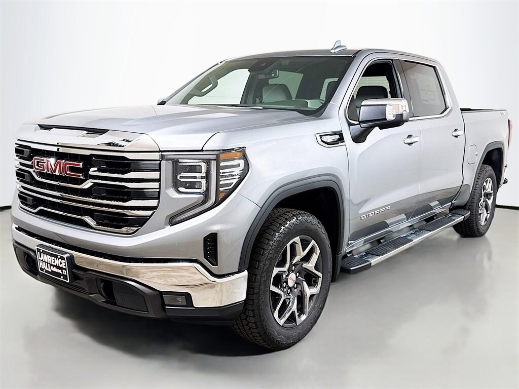 This 2026 GMC Sierra 1500 SLT New Vehicle Purchase in Sterling Metallic comes with the following features: 10-Speed Automatic, 4WD, Dark Walnut/Slate Leather, 10-Way Power Driver Seat Adjuster w/Lumbar, 10-Way Power Passenger Seat Adjuster w/Lumbar, 120-Volt Bed Mounted Power Outlet, 120-Volt Interior Power Outlet, 170 Amp Alternator, 2 Charge/Data USB Ports, 2 Type-C Charge-Only Rear USB Ports, 3.23 Rear Axle Ratio, 4-Wheel Disc Brakes, 6 Speakers, 6-Speaker Audio System Feature, ABS brakes, Air Conditioning, Alloy wheels, AM/FM radio: SiriusXM with 360L, Apple CarPlay/Android Auto, Auto High-beam Headlights, Auto-dimming door mirrors, Auto-dimming Rear-View mirror, Auto-Locking Rear Differential, Automatic Emergency Braking, Automatic temperature control, Auxiliary External Transmission Oil Cooler, Brake assist, Buckle to Drive, Bumpers: chrome, Chrome Header & Chrome Grille Insert Bars, Color-Keyed Carpeting Floor Covering, Compass, Deep-Tinted Glass, Delay-off headlights, Driver door bin, Driver Memory, Driver vanity mirror, Dual front impact airbags, Dual front side impact airbags, Electric Rear-Window Defogger, Electronic Stability Control, Emergency communication system: OnStar, Following Distance Indicator, Forward Collision Alert, Front 40/20/40 Split-Bench Seat, Front anti-roll bar, Front Center Armrest w/Storage, Front dual zone A/C, Front fog lights, Front Frame-Mounted Black Recovery Hooks, Front Pedestrian Braking, Front Rain-Sensing Wipers, Front reading lights, Front wheel independent suspension, Fully automatic headlights, HD Rear Vision Camera, Heated door mirrors, Heated Driver & Front Outboard Passenger Seating, Heated front seats, Heated steering wheel, Hitch Guidance, Illuminated entry, Integrated Trailer Brake Controller, IntelliBeam Automatic High Beam On/Off, Keyless Open & Start, Lane Keep Assist w/Lane Departure Warning, LED Cargo Area Lighting, Low tire pressure warning, Manual Tilt-Wheel & Telescoping Steering Column, Memory seat, Navigation System, Occupant sensing airbag, OnStar Services Capable, Outside temperature display, Overhead airbag, Overhead console, Panic alarm, Passenger door bin, Passenger vanity mirror, Perf Leather-Appointed Front Outboard Seat Trim, Perimeter Lighting, Power Door Locks, Power door mirrors, Power driver seat, Power Front Passenger Windows w/Express Up/Down, Power Front Windows w/Driver Express Up/Down, Power passenger seat, Power Rear Windows w/Express Down, Power steering, Power windows, Preferred Equipment Group 4SA, Push Button Start, Radio data system, Radio: Premium GMC Infotainment Audio System, Rain sensing wipers, Rear reading lights, Rear seat center armrest, Rear step bumper, Rear Wheelhouse Liners, Rear window defroster, Remote keyless entry, Remote Vehicle Starter System, Security system, SiriusXM w/360L Trial Subscription, Speed control, Speed-sensing steering, Split folding rear seat, Standard Suspension Package, Steering Wheel Audio Controls, Steering wheel mounted audio controls, Tachometer, Telescoping steering wheel, Theft Deterrent System (Unauthorized Entry), Tilt steering wheel, Traction control, Trailering Package, Trip computer, Variably intermittent wipers, Voltmeter, Wheels: 18 x 8.5 6-Spoke Machined Aluminum, Wi-Fi Hotspot Capable, Wireless Apple CarPlay/Wireless Android Auto, 10-Speed Automatic, 4WD, Dark Walnut/Slate Leather.