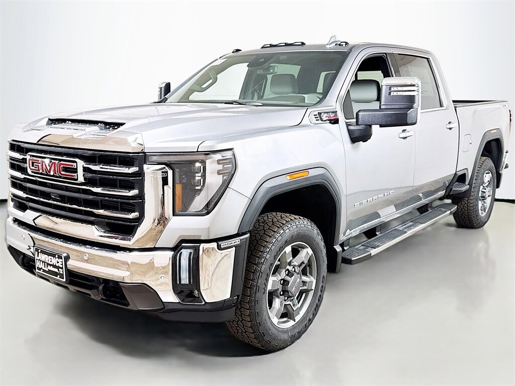 This 2026 GMC Sierra 2500HD SLT New Vehicle Purchase in Sterling Metallic comes with the following features: 10-Speed Automatic, 4WD, Dark Walnut/Slate Leather, 10-Way Power Driver Seat Adjuster with Lumbar, 10-Way Power Passenger Seat Adjuster with Lumbar, 120-Volt Bed Mounted Power Outlet, 120-Volt Instrument Panel Power Outlet, 18 Machined Aluminum Wheels, 2 Charge-Only Rear USB Ports, 2 Charge/Data USB Ports, 2 Charge/Data USB Ports Inside Center Console, 2-Speed Active Transfer Case, 220-Amp Alternator, 4-Wheel Disc Brakes, 5th Wheel and Gooseneck Trailer Wiring Provisions, 6 Speakers, 6-Speaker Audio System Feature, ABS brakes, Adaptive Cruise Control, Air Conditioning, All-Weather Floor Liners, Alloy wheels, AM/FM radio: SiriusXM with 360L, Apple CarPlay/Android Auto, Auto High-beam Headlights, Auto-dimming door mirrors, Auto-dimming Rear-View mirror, Automatic Emergency Braking, Automatic temperature control, Bed View Camera with Two Trailer Camera Provisions, Black Front and Rear Molded Splash Guards, Bose Premium 7-Speaker Sound System, Brake assist, Buckle to Drive, Bumpers: chrome, Chrome Surround Grille with Chrome Insert Bars, Compass, Deep-Tinted Glass, Delay-off headlights, Driver door bin, Driver Memory, Driver vanity mirror, Dual front impact airbags, Dual front side impact airbags, Electric Rear-Window Defogger, Electronic Stability Control, Emergency communication system: OnStar, Engine Block Heater, Exhaust Brake, Floor-Mounted Center Console, Following Distance Indicator, Forward Collision Alert, Front 40/20/40 Split-Bench Seats, Front anti-roll bar, Front Bucket Seats, Front Center Armrest w/Storage, Front dual zone A/C, Front fog lights, Front License Plate Kit, Front Pedestrian Braking, Front Rain-Sensing Wipers, Front reading lights, Front wheel independent suspension, Fully automatic headlights, GMC Protection Package, HD Surround Vision, Heated 2nd Row Outboard Seats, Heated door mirrors, Heated Driver and Front Outboard Passenger Seats, Heated front seats, Heated steering wheel, Heavy-Duty 80 Amp Battery, Hill Descent Control, Hitch Guidance with Hitch View, Illuminated entry, in-Vehicle Trailering System App, IntelliBeam Automatic High Beam on/Off, Keyless Open and Start, Lane Departure Warning System, LED Cargo Area Lighting, LED Smoked Amber Roof Marker Lamps, Low tire pressure warning, Manual Tilt-Wheel/Telescoping Steering Column, Memory seat, Occupant sensing airbag, Off-Road Suspension, OnStar Services Capable, Outside temperature display, Overhead airbag, Overhead console, Panic alarm, Passenger door bin, Passenger vanity mirror, Perforated Leather-Appointed Front Outboard Seat Trim, Pickup Box, Power door mirrors, Power driver seat, Power Front Passenger Windows with Express Up/Down, Power passenger seat, Power Sliding Rear Window with Defogger, Power steering, Power windows, Preferred Equipment Group 4SA, Premium audio system: Premium GMC Infotainment System, Push Button Start, Radio: AM/FM Stereo with Premium GMC Infotainment System, Rain sensing wipers, Rear Cross Traffic Alert, Rear reading lights, Rear seat center armrest, Rear step bumper, Rear Wheelhouse Liners, Rear window defroster, Remote keyless entry, Remote Vehicle Starter System, Safety Alert Seat, Security system, Sierra HD Pro Safety Plus Package, SiriusXM with 360L Trial Subscription, SLT Convenience Package, SLT Preferred Package, Speed control, Speed-sensing steering, Split folding rear seat, Steering Wheel Audio Controls, Steering wheel mounted audio controls, Suspension Package, Tachometer, Telescoping steering wheel, Tilt steering wheel, Traction control, Trailer Cam Provisions and Trailer Viewing Software, Trailer Side Blind Zone Alert, Trip computer, Turn s Tax, title and license not included. Vehicle may have dealer accessories added. Pricing may not be compatible with cash, outside finance, or special APR offers. Contact dealer for additional details: $500 - Buic