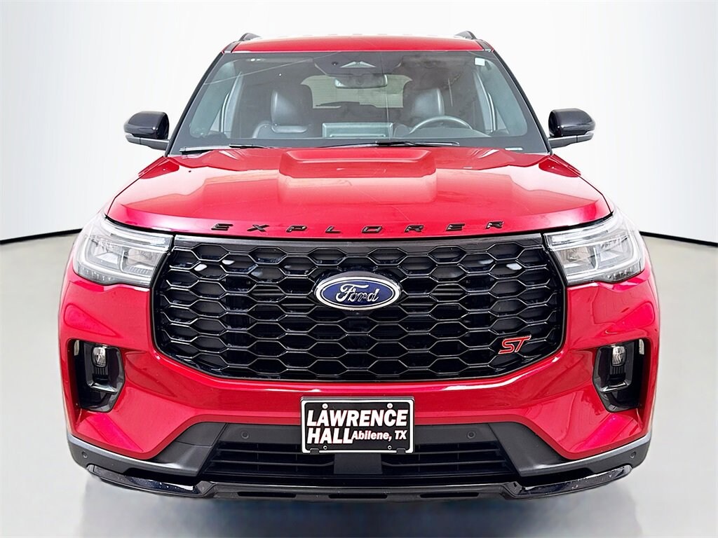 2025 Ford Explorer ST 10 Speakers, 3.58 Non-Limited Slip Rear Axle, 3rd row seats: bench, 4-Wheel Disc Brakes, ABS brakes, Air Conditioning, Alloy wheels, AM/FM radio: SiriusXM with 360L, Apple CarPlay/Android Auto, Auto High-beam Headlights, Auto-dimming door mirrors, Auto-dimming Rear-View mirror, Automatic temperature control, Brake assist, Bumpers: body-color, Compass, Delay-off headlights, Driver door bin, Driver vanity mirror, Dual front impact airbags, Dual front side impact airbags, Electronic Stability Control, Emergency communication system: 911 Assist, Equipment Group 400A Standard Package, Exterior Parking Camera Rear, Four wheel independent suspension, Front anti-roll bar, Front Bucket Seats, Front Center Armrest, Front dual zone A/C, Front fog lights, Front License Plate Bracket, Front reading lights, Fully automatic headlights, Garage door transmitter, Heated door mirrors, Heated front seats, Heated rear seats, Heated steering wheel, Heated/Ventilated Miko Sport Captain's Chairs, Illuminated entry, Internet access capable: FordPass Connect 5G, Knee airbag, Leather steering wheel, Low tire pressure warning, Memory seat, Navigation System, Occupant sensing airbag, Outside temperature display, Overhead airbag, Overhead console, Panic alarm, Passenger door bin, Passenger vanity mirror, Power door mirrors, Power driver seat, Power Liftgate, Power passenger seat, Power steering, Power windows, Radio: B&O Sound System by Bang & Olufsen, Rain sensing wipers, Rear air conditioning, Rear anti-roll bar, Rear reading lights, Rear window defroster, Rear window wiper, Remote keyless entry, Security system, Speed control, Speed-sensing steering, Speed-Sensitive Wipers, Split folding rear seat, Spoiler, Sport steering wheel, Steering wheel mounted audio controls, Tachometer, Telescoping steering wheel, Tilt steering wheel, Traction control, Trip computer, Turn signal indicator mirrors, Variably intermittent wipers, Ventilated front seats, Wheels: 21 Magnetite-Painted Aluminum.