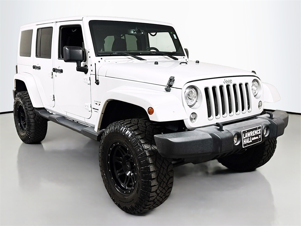 4WD, Popular features include equipment like, Bluetooth, Cruise Control, Keyless Entry, is a one owner vehicle with a clean CarFax, Air Conditioning, Body Color Appliques Front Bumper, Body Color Appliques Rear Bumper, Body Color/Accent Color Grille, Connectivity Group, Front fog lights, Fully automatic headlights, Panic alarm, Power steering, Power windows, Quick Order Package 23G, Remote keyless entry, Security system, Steering wheel mounted audio controls, Tire Pressure Monitoring Display, Uconnect Voice Command w/Bluetooth, Vehicle Information Center. CARFAX One-Owner. Clean CARFAX. 2018 Jeep Wrangler JK Unlimited Sahara